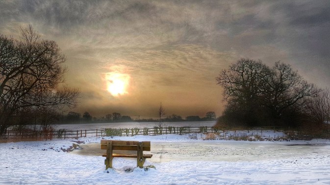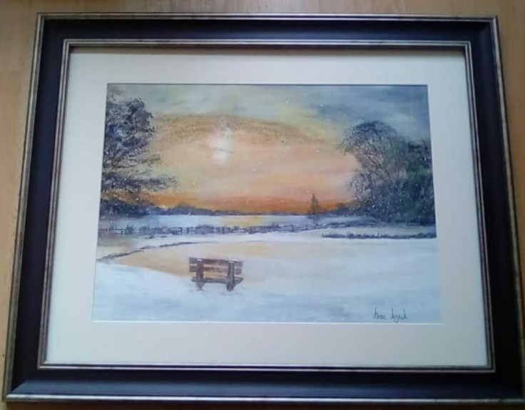 During the few snowy days at the end of the winter, Chris Seymour sent in a series of photographs he took at dawn. A local artist, Anne Lynch, has turned one of them into a painting; thank you for sharing it with us, Anne.