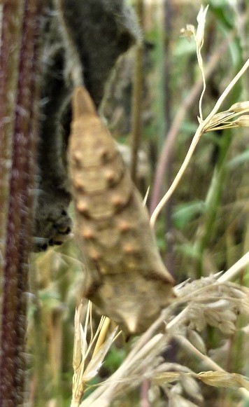 At the weekend, he found and photographed one of their chrysalises hanging from a nettle stem. He emailed this: