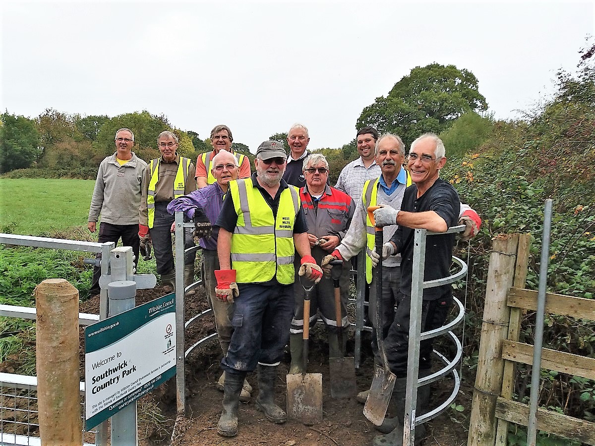 Rambler volunteers assisted with installing the replacement kissing gate at the allotment end of the Country Park (and also renovating the fence alongside). This mobility kissing gate is large enough for most wheelchair/mobility scooter users to navigate but, if more space is needed, the gate can be opened wide by unlocking the Radar padlock on the top, using a Radar key. The kissing gate was funded by Trowbridge Area Board.