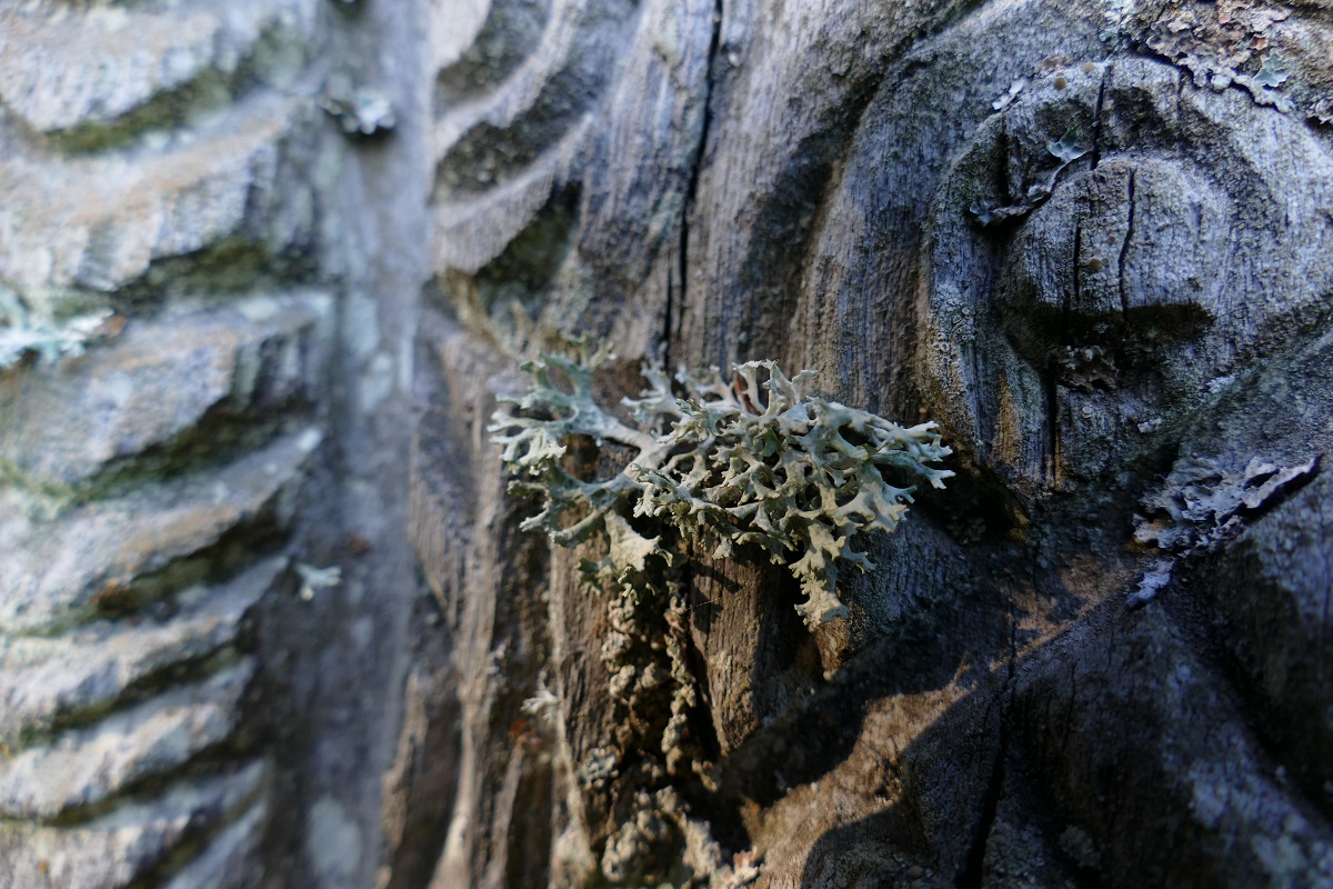 The Wildlife Wheel has been there, in the corner of Sheepfield, for almost twenty years. It has aged in those years, changed colour, split and grown a fascinating crop of lichens.