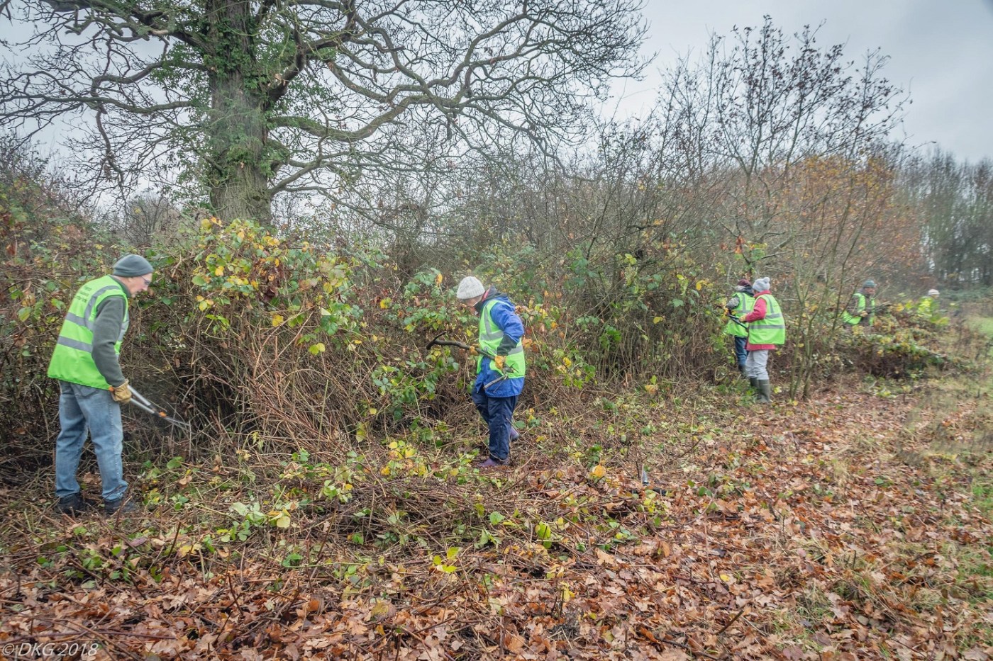 Tasks for the morning included the continuation of the haloing and bramble clearing in the bottom section of Sleeper Field, this will bring the hedge line back to it’s original line after years of the creeping brambles. The photos show just how much was cleared today, one more morning’s concerted effort should bring us up to the entrance into The Race.