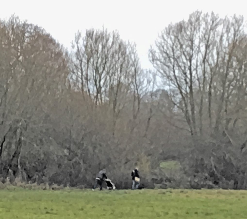 I called the contact number and reported it. I shouted at them but was too far away to get a close up picture of them. I saw them later drive away in a silver grey, possibly Mercedes car. There were a few people who may have seen them especially with the 2 black dogs. I suggest cctv on car park. At least you can get registrations then.