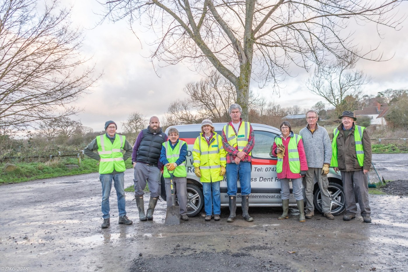 Six members of FoSCP, our Countryside Officer (and her husband), three wheelbarrows, two brooms and a bunch of shovels were joined by Matt (from Dent-Wise Removals) and a wacker plate loaned by Dig it Groundwork & Grab Lorry Services. The wacker was the noisy star of the whole event; our grateful thanks to it, its owners and its operator.