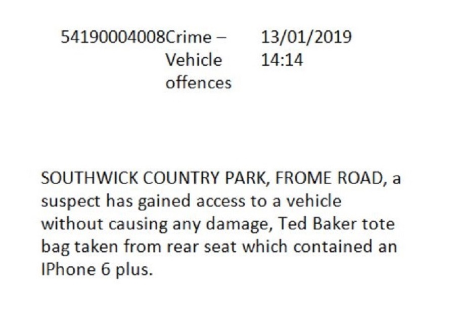 REMEMBER TO LOCK YOUR CAR AND TAKE VALUABLES WITH YOU. Crime Report If you saw anything that might help the police there are contact details here Share on your social media: Click to share on Facebook (Opens in new window) Facebook Click to share on X (Opens in new window) X Like Loading... Comments are closed.