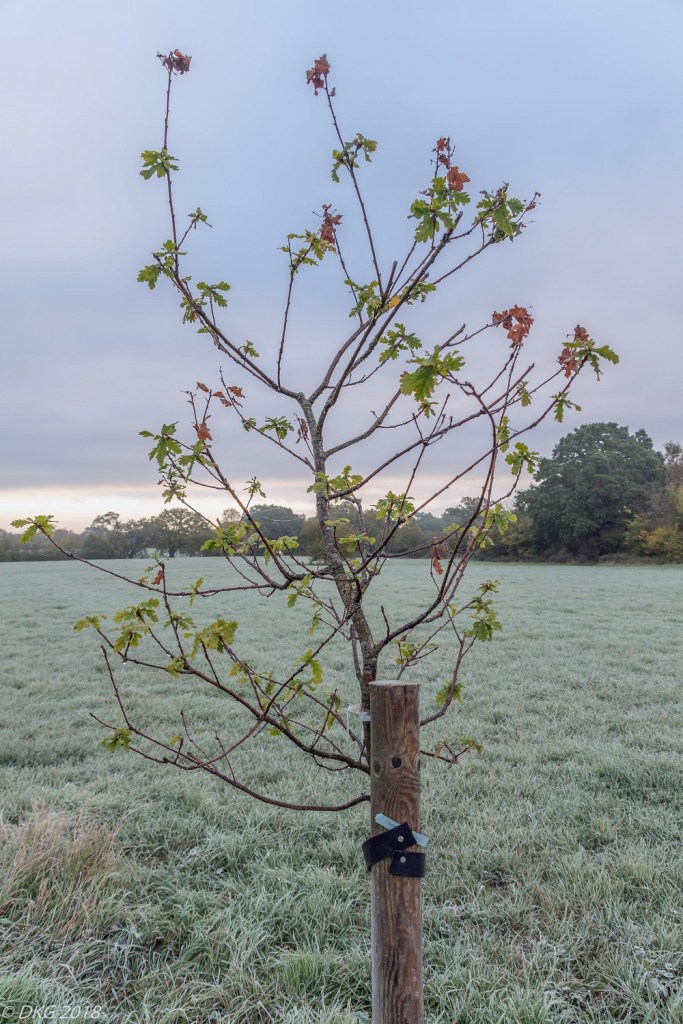 three ten year old oaks planted in Sleepers Field (DKG)