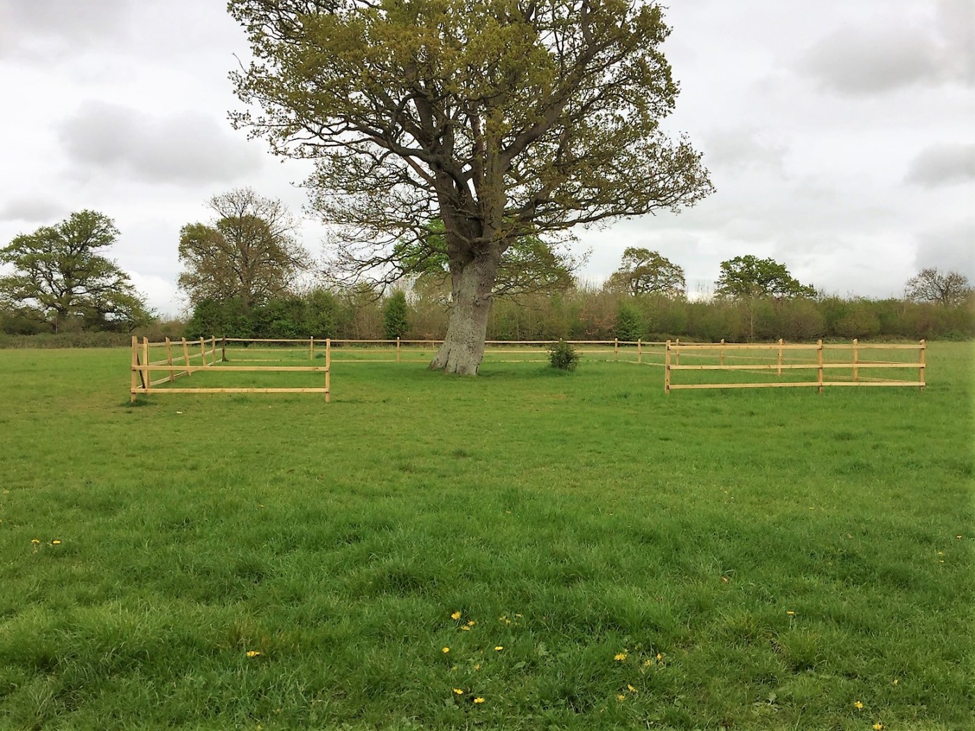 The fence is there to protect park-users from the dangers of an ageing tree; the Lone Oak has dead and rotting branches and its trunk is hollow in its upper part. Last year it became quite a popular picnic spot and, after an extensive aerial survey of the tree, our Tree Officer decided it was too dangerous to let that continue. The alternative to the fence is either the amputation of the rotting limbs or felling the whole tree.