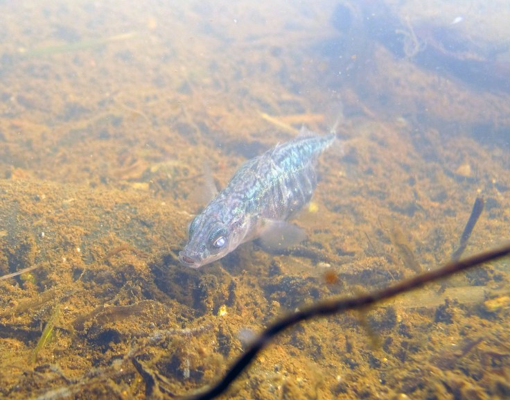 There were many water vole holes both upstream and downstream from the bridge and we did our best not to disturb either the voles or their well established runs along the water’s edge underneath the vegetation. We did disturb a frog or two, many tadpoles and a small shoal of sticklebacks.