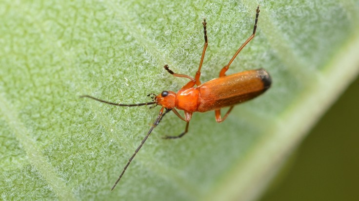 All the soldier beetles are clumsy fliers; like ladybirds, they take off from the highest point they can reach and land apparently haphazardly. At this time of year, if a flying beetle lands on you, it is almost bound to be a common soldier beetle. Don’t be alarmed; it is harmless.
