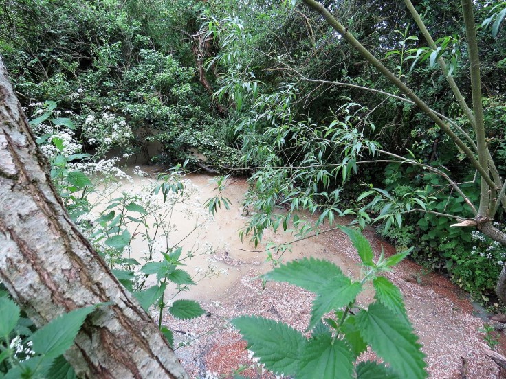 The Environment Agency contacted Wessex Water, who said it was, after all, a broken water main but we were not to worry because there were no chemical contaminants in the water and it wasn’t chlorinated. They were waiting, they said, on something that could not be delivered until Tuesday when the break would be fixed. The Environment Agency asked them to turn the water pressure down to reduce the flow and the sediment and they said they would.