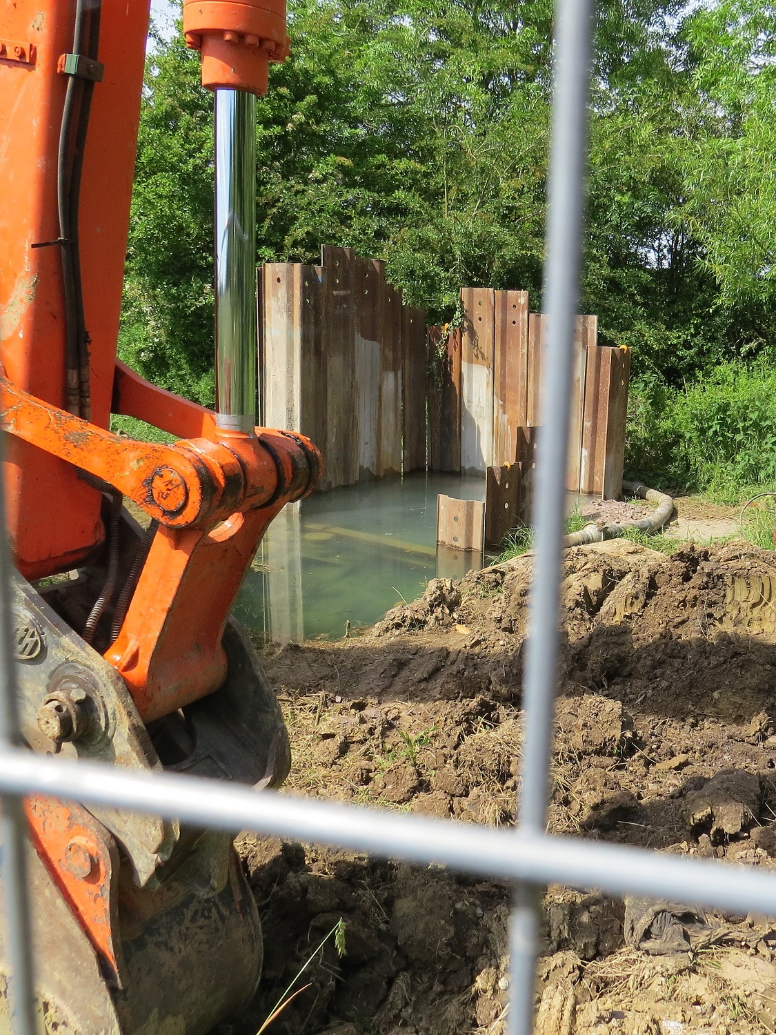 By Monday morning the water in the Lambrok was looking like cafe au lait, flowing very rapidly and easily 25cm deeper than usual. At the site of the leak, the water escaping from the main was making a noise that could be heard fifty metres away. We rang the Environment Agency; the Environment Agency rang Wessex Water who said the work would start the next day and, by the way, the water was chlorinated; all mains water is chlorinated.