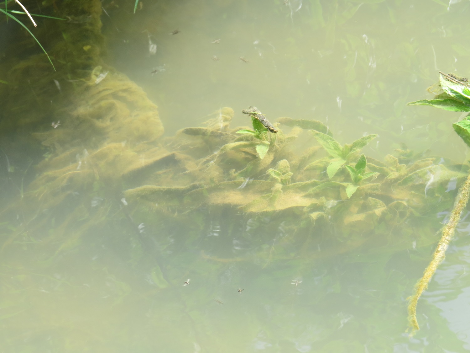 We don’t know yet how much damage has been done, The bed of the stream, its vegetation and presumably the invertebrates that live there are covered with silt and there are no fish to be seen. There was a pair of beautiful demoiselles among the iris stems this morning; let’s hope the water was clear enough and the chlorine diluted enough for the female to find somewhere to lay her eggs.