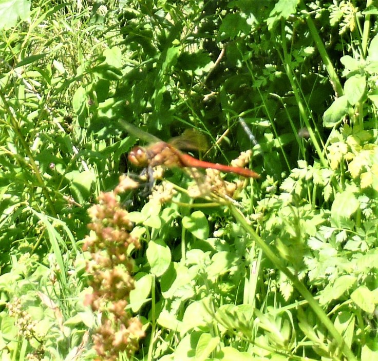 Both darters choose still water like the Dog Pond, with borders of semi-aquatic vegetation. The ruddy darter can be more elusive than the common darter, and often hides in the reeds around the fringes of the pools.