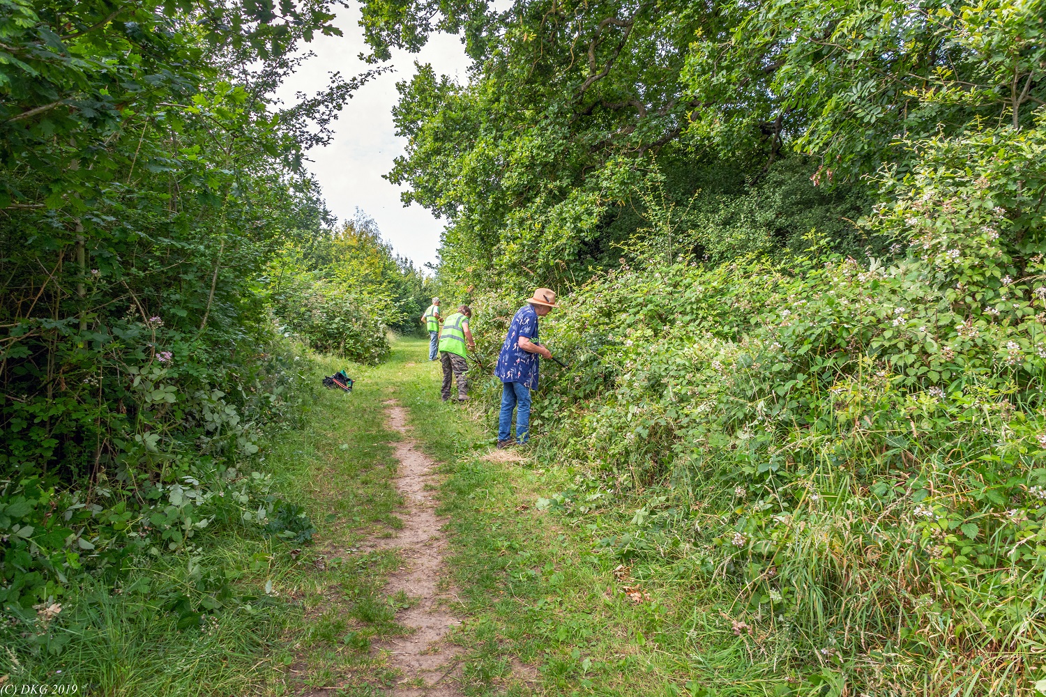 Today’s tasks were path clearing and removal of the ever creeping brambles. Most of this work was carried out in the Arboretum and the footpaths through the copse and leading into Kestrel field; shady work under the trees.