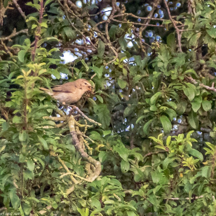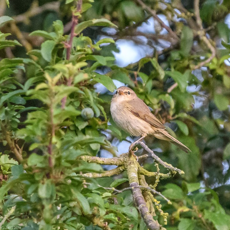 A willow warbler (Phylloscopus trochilus) seen and photographed by DKG yesterday morning.