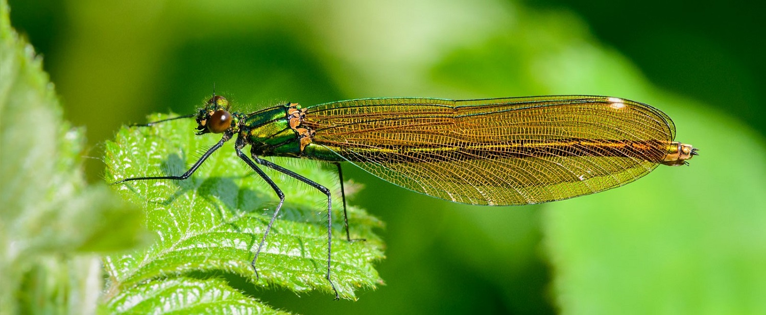 A beautiful demoiselle (Calopterix virgo), photographed in the park this summer by DKG.