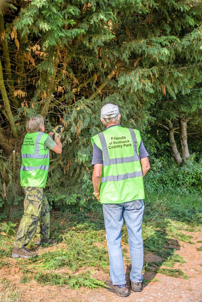 A warm and dry morning this Tuesday, 27th Aug, greeted the FoSCP for our meet up in the car park, along with Richard from the Countryside Team; a nice change from our previous two work days which were very wet. With the holiday season still in full swing we did not have our normal complement of friends so the number of tasks to complete had to be reduced.