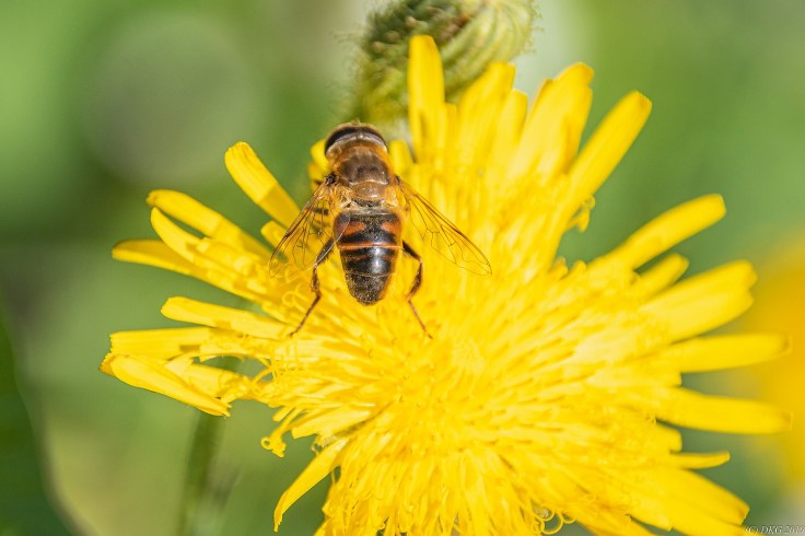 It is the world’s most widespread species of hover-fly, found everywhere, on all continents, except the Antarctic. It is a nectar-feeder and is an important pollinator, especially now, as honey bee populations plummet.