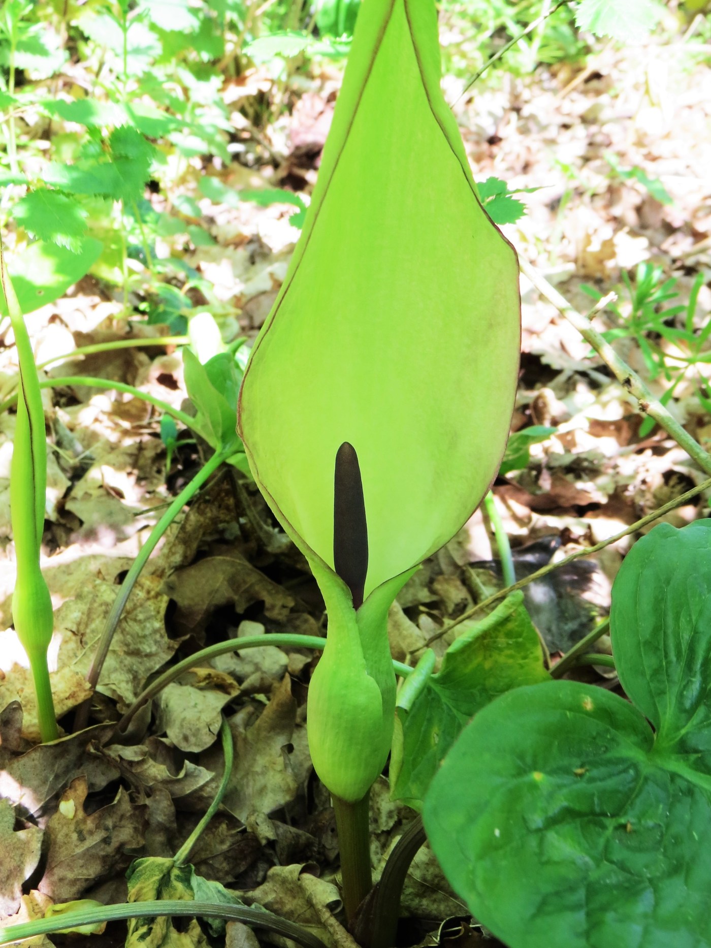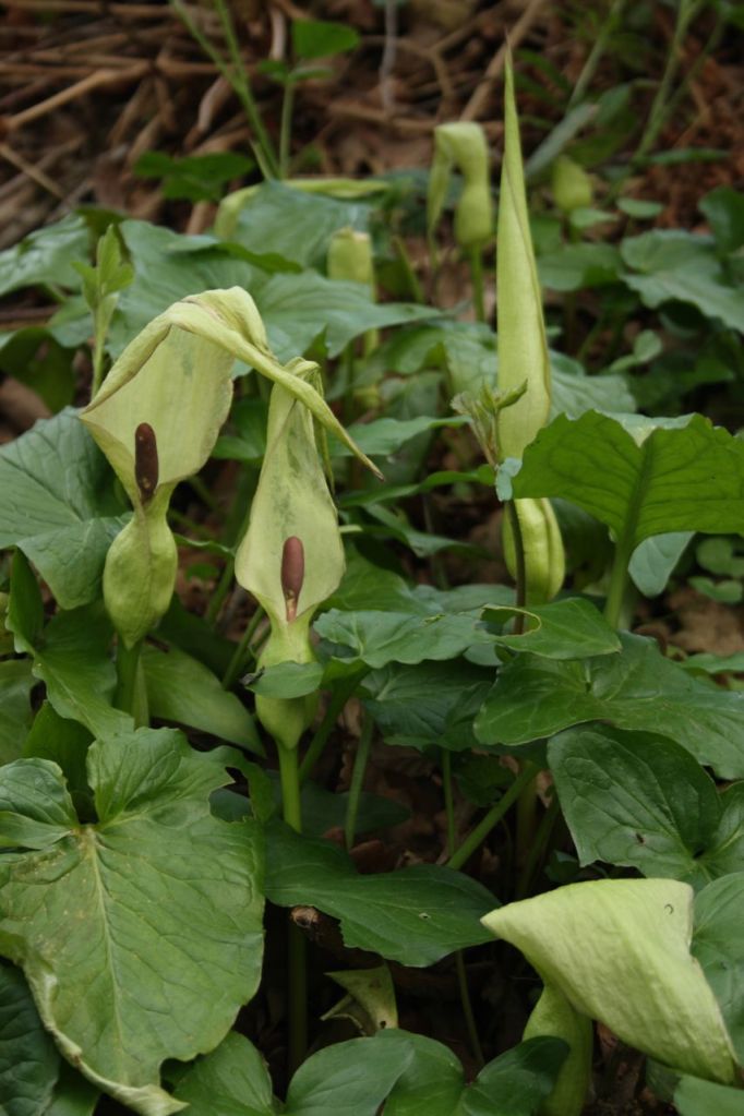 Wild arum has a multitude of common names: cuckoo pint, Jack-in-the-pulpit, bloody man’s finger, snakeshead, and adder’s root are just a few of them. Because of its suggestive shapes, some of the names are really quite bawdy: priest’s pintle (pintle is an Old English word for penis), Adam and Eve, cows and bulls and Lords-and-Ladies. Even cuckoo pint is suspect: pint is believed to be a shortening of pintle.