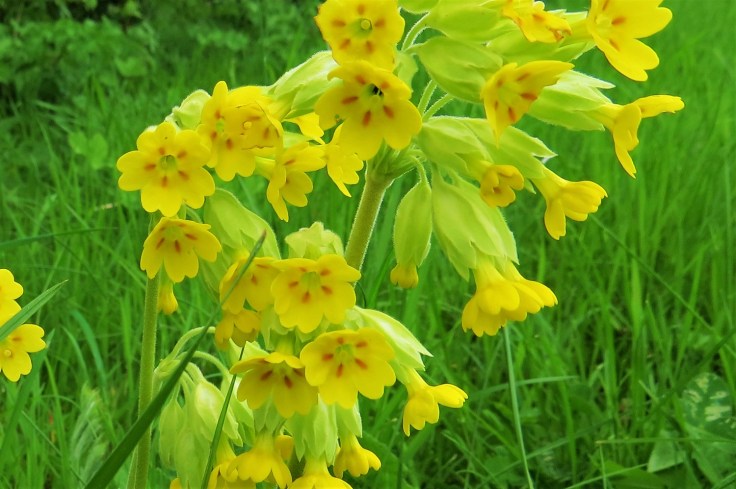 In the stream between the Decorated Bridge and the boundary hedge there are lots of very small tadpoles and at the bottom of Kestrel Field, on the edge of the copse, we found cowslips – I think these are the ones we planted last year.