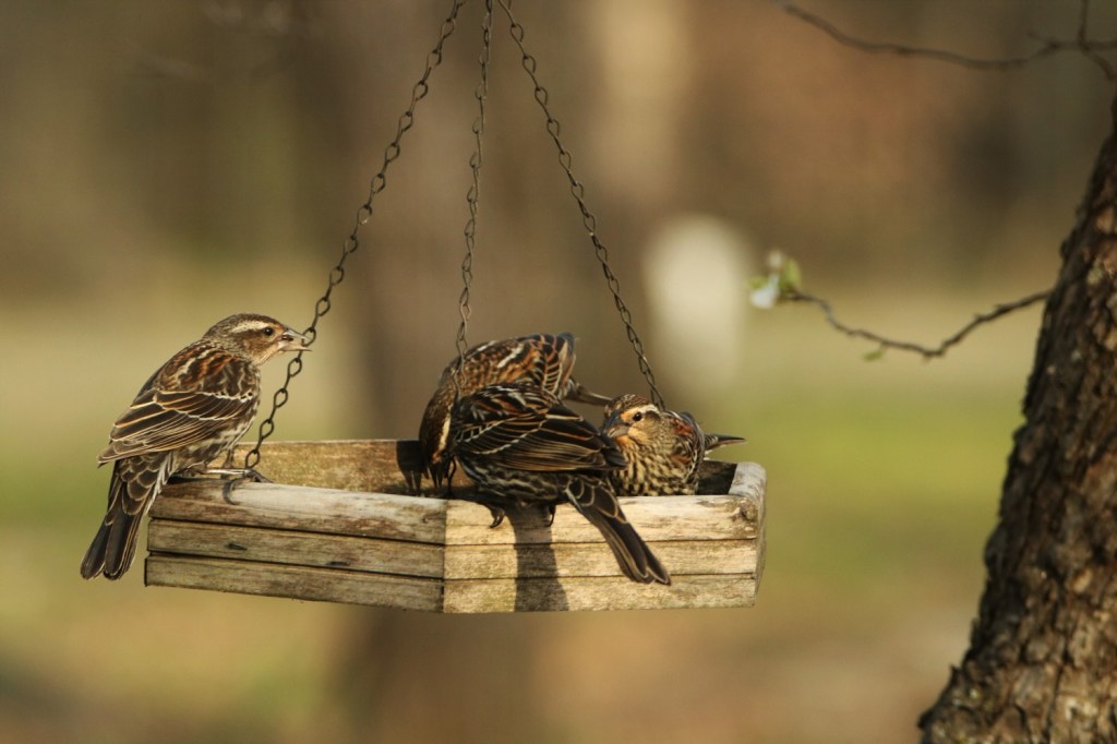 Feeding birds in the spring.