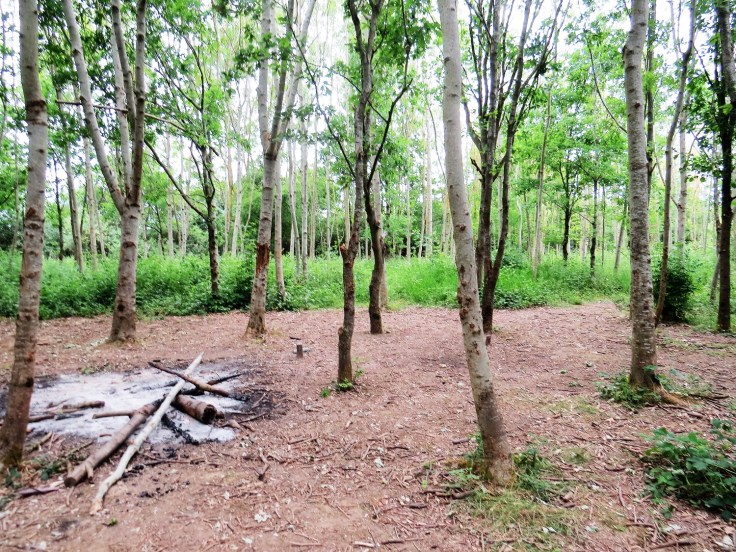 [1] A shelter of birch poles built in Lower Wood Nature Reserve in Norfolk; [2] the place where the ash poles were burned; [3] these are the trees that supported that last shelter we saw here; [4] signed off!