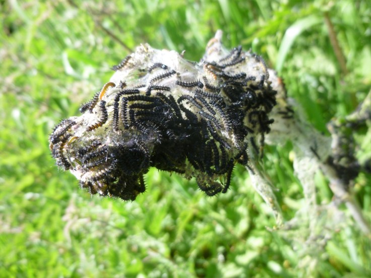 The peacock caterpillars in the nettles in Simpson’s Field are growing fast.