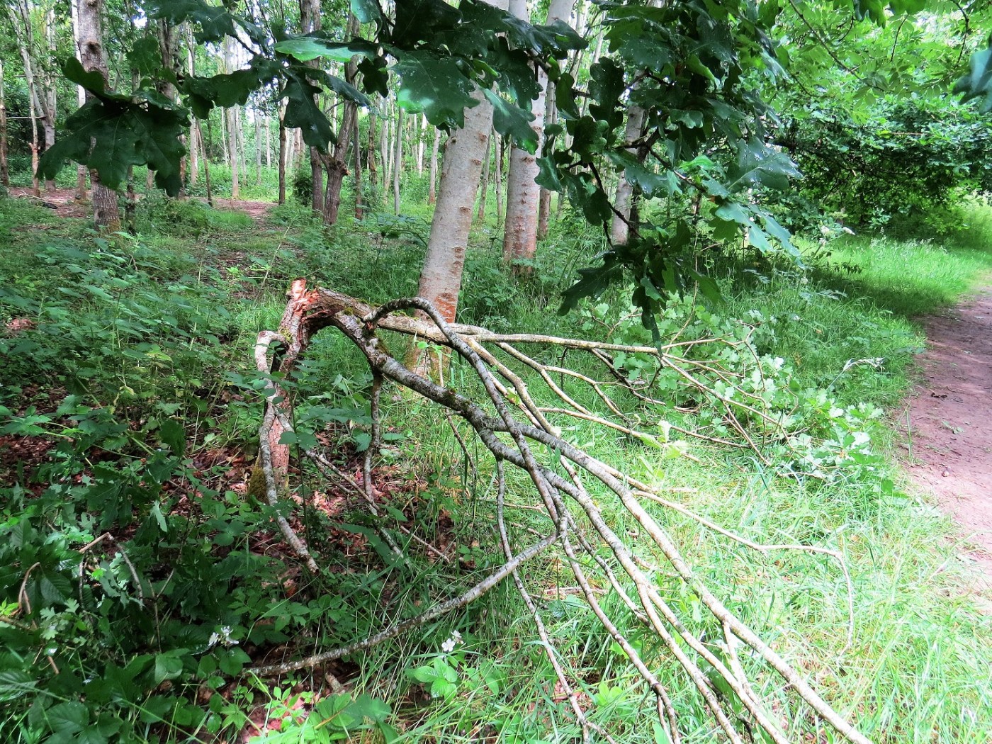The fire place in the clearing is getting bigger and to fuel their fires, the group has cleared the ground around it of dead wood; they have broken and cut branches from the trees and, on Tuesday, were seen snapping off a young oak tree. Nearby, another young tree had been pulled over in what looked like an attempt to uproot it.