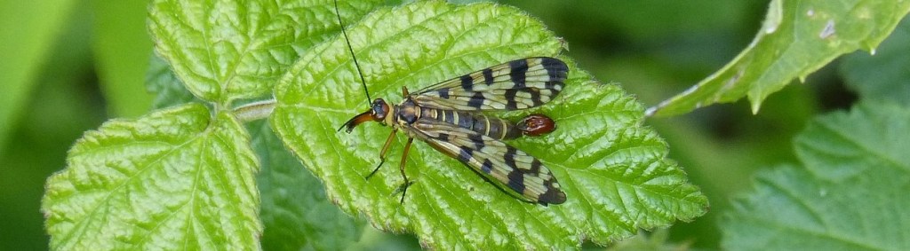 They cannot sting but may pretend to if handled, but generally when disturbed, they will drop to the ground. From now until September is a good time to see them in the park. There are three species in the UK, all of the genus Panorpa but they are very difficult to tell apart.