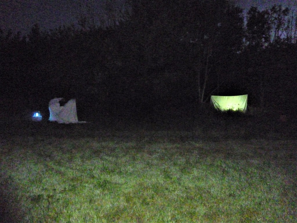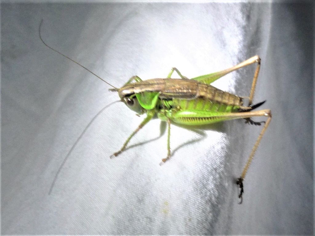 [1] Moth traps on Village Green; [2] the confused Roesel’s Bush-cricket