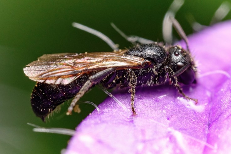 [4] small scissor bees nest in the tunnels of wood boring beetles; [5] tree creeper photographed in the park by DKG; [6] green woodpecker and [7] blue tit photographed at nest holes by DKG.