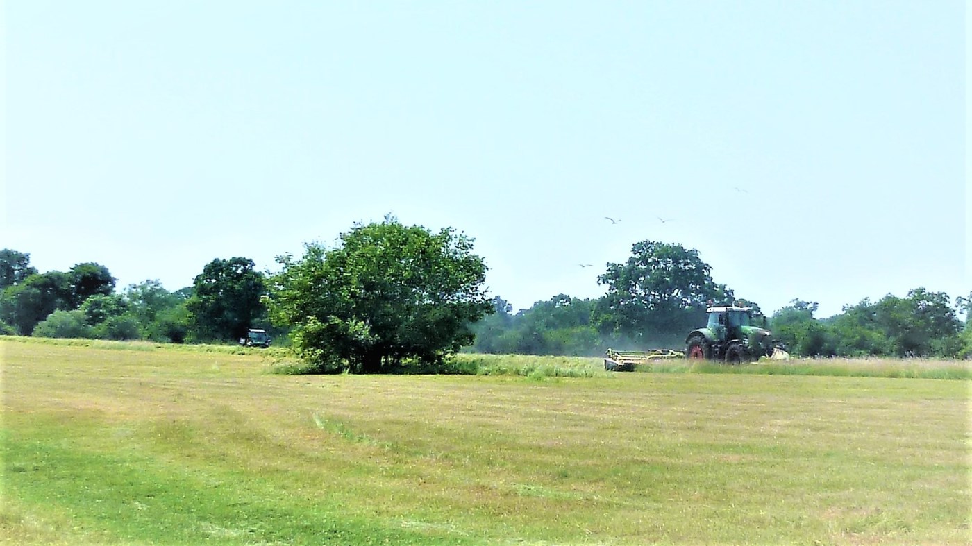 Over the weekend, the grass was cut and baled in all the park’s fields except Village Green. Unfortunately, in Cornfield, the fence around the Lone Oak was damaged by the farm machinery as it turned.