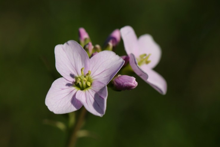 Milkmaids belongs to the brassica family and is an unlikely close cousin to the Brussel sprouts you probably ate with your turkey, on Christmas Day. All brassicas, even Brussel sprouts, are easily identified by their flowers which have only four petals, arranged as a cross, with six yellow stamens at its centre. Like most brassicas, Cardamine pratensis is edible, the leaves and flowers adding a peppery edge to a summer salad.