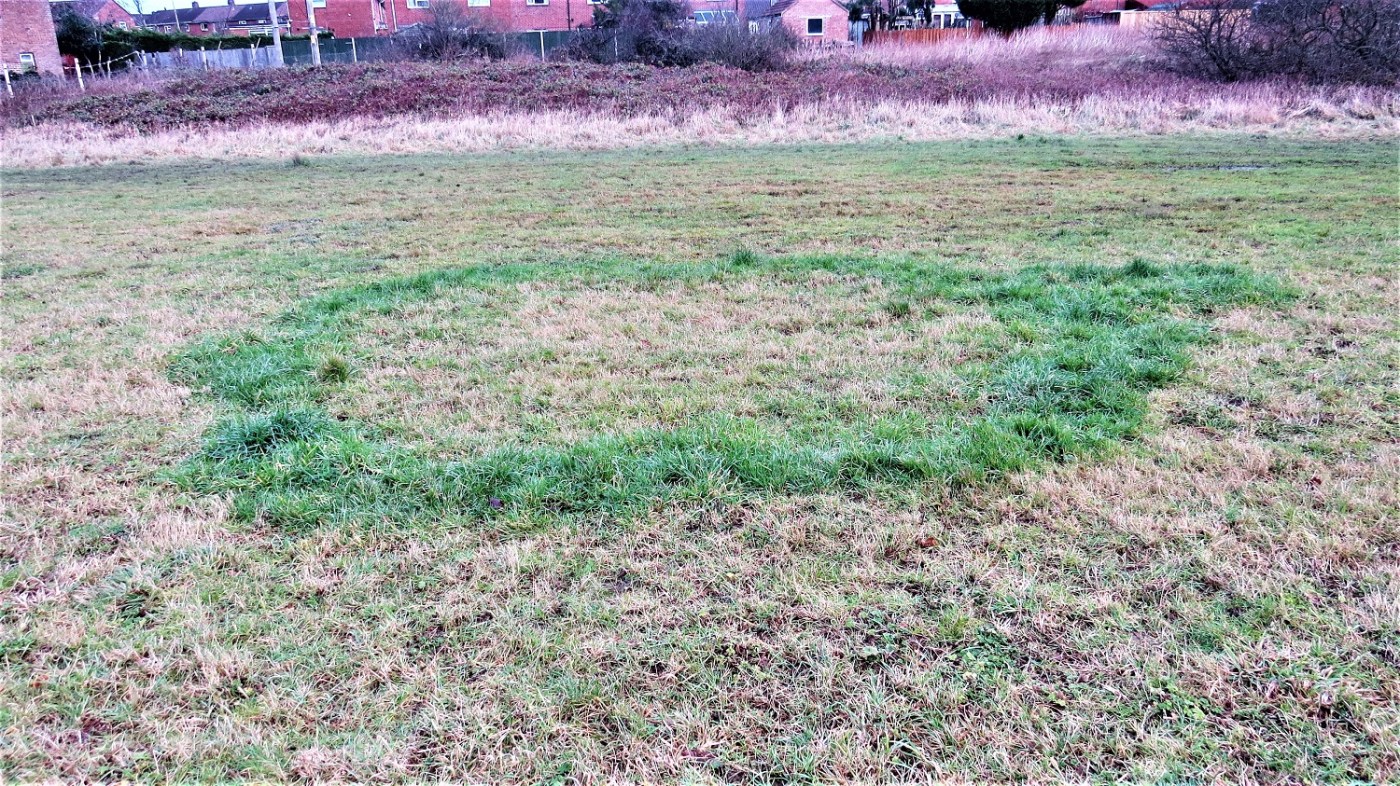 While a burial pit will leave a mark in the soil, it doesn’t usually leave such a distinct mark in the vegetation, not after two or three thousand years, anyway. Two of the rings DID have that odd sticking-out piece (right hand side of my pic) though and I can’t account for that. A fungal ring seemed most likely but a bronze age site would be a great thing to find.