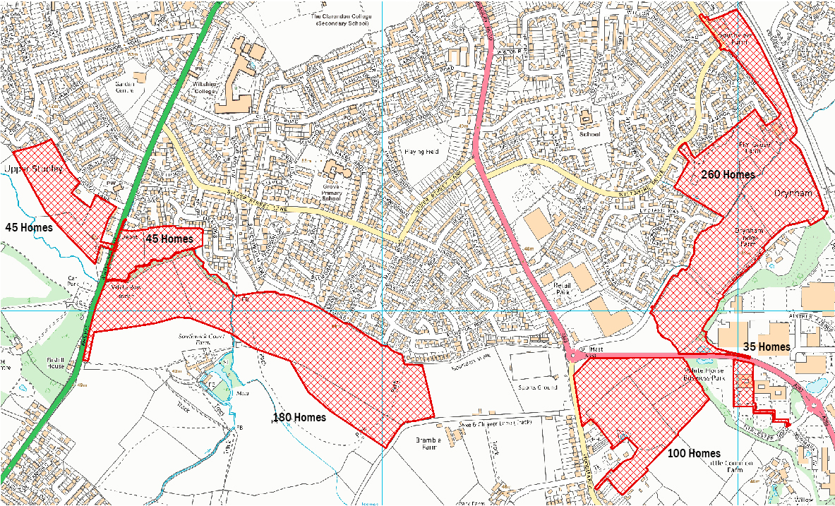 Just to give you an idea of the scale of proposed development South of Trowbridge, I have put together this composite map from the Wiltshire Planning Portal, which shows the six “live” housing applications currently being pushed through separately by different developers, almost all of them on green field sites. That’s a combined total of 665 additional homes in just the space of 2 or 3 kilometres from Upper Studley to Drynham. They are being put through individually, rather than as a single giant estate. As a result, each one is being considered by Wiltshire Planning – by four different Planning Officers in fact – as, effectively, a separate individual application. There is no “masterplan” for the development as a whole.