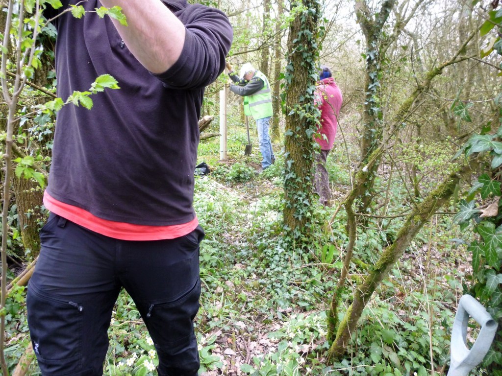 At last we have been able to get to the park and do some work. The saplings, stakes and tree guards are far too big and much too heavy to lift to the park in my car so Countryside Team Officer Vicky turned up with the County Land Rover and we managed to get them all in. As usual the Friends met up in the car park on Wednesday between 09:00 and 09:30 and different tasks handed out and taken up. One constant is Pat, who takes on the litter.