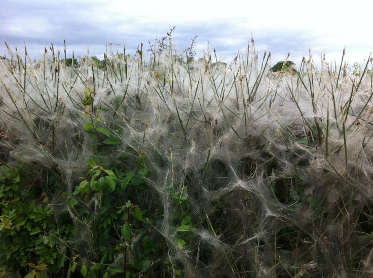 Although they might look sinister, these webs are harmless and usually last only from May to June. They slowly disappear over the summer and typically the hedgerow recovers.