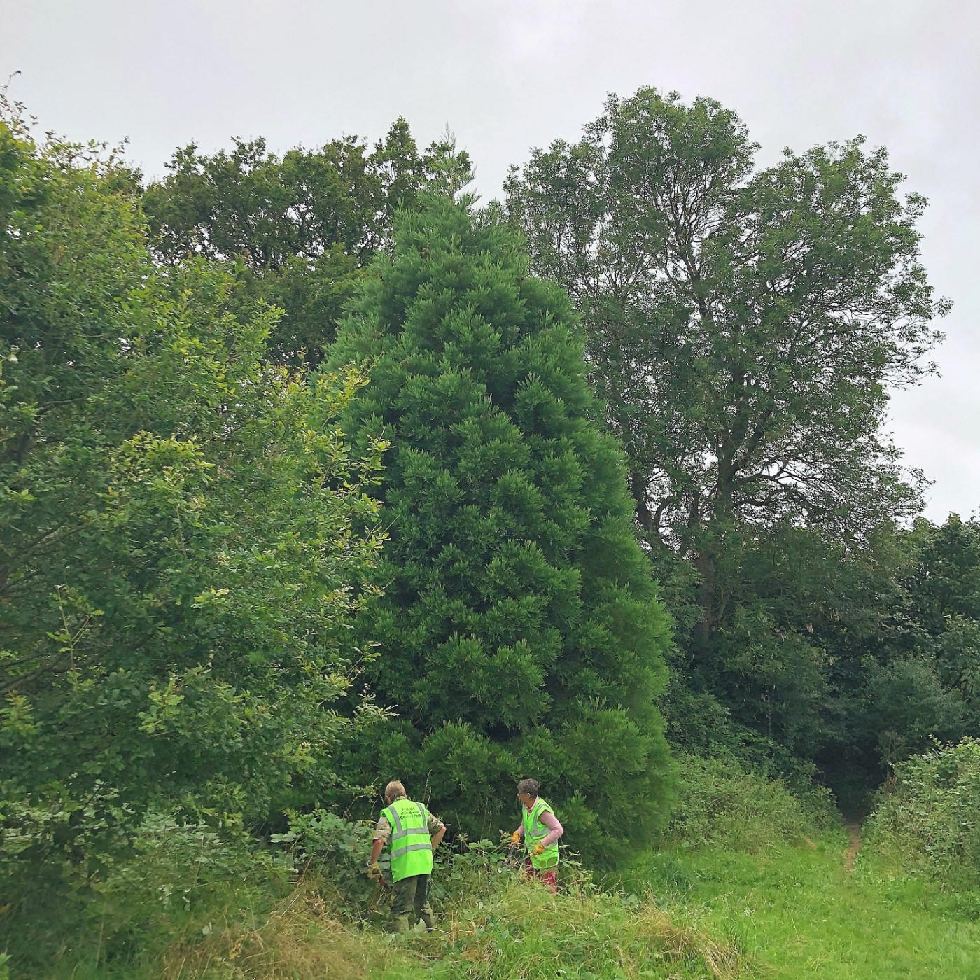 A beginning was made today in the bottom corner where there are four Redwoods. We last cleared this area some two years ago, but the Brambles, young Hawthorn, Blackthorn and Ash, together with the Willow Herb had come back with a vengeance. We cut through the tangle of Bramble and undergrowth and were then better able to see which trees were damaged or need to be removed.
