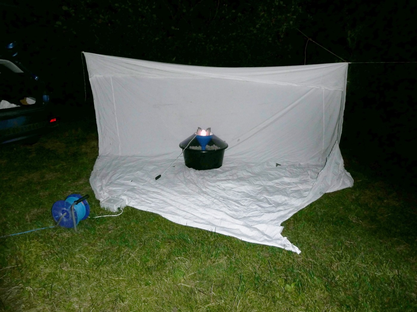 Having got permission from the Countryside Team to carry out moth trapping in the reserve, Hugo and I met up at 8 pm last Tuesday and went to Village Green where we set up the lamp and sheet. During the course of the evening the set-up attracted 78 moths covering some 30 species: 23 Macros [these are the larger moths] and 7 Micros [the much smaller moths] – not a bad evening’s trapping.