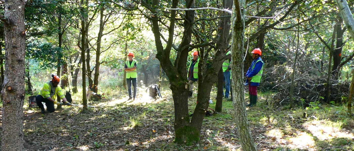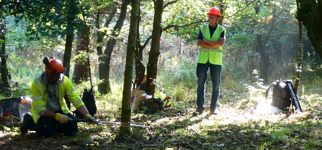 [1] Ash Die-Back [2] cutting back undergrowth to clear small glades among the trees.