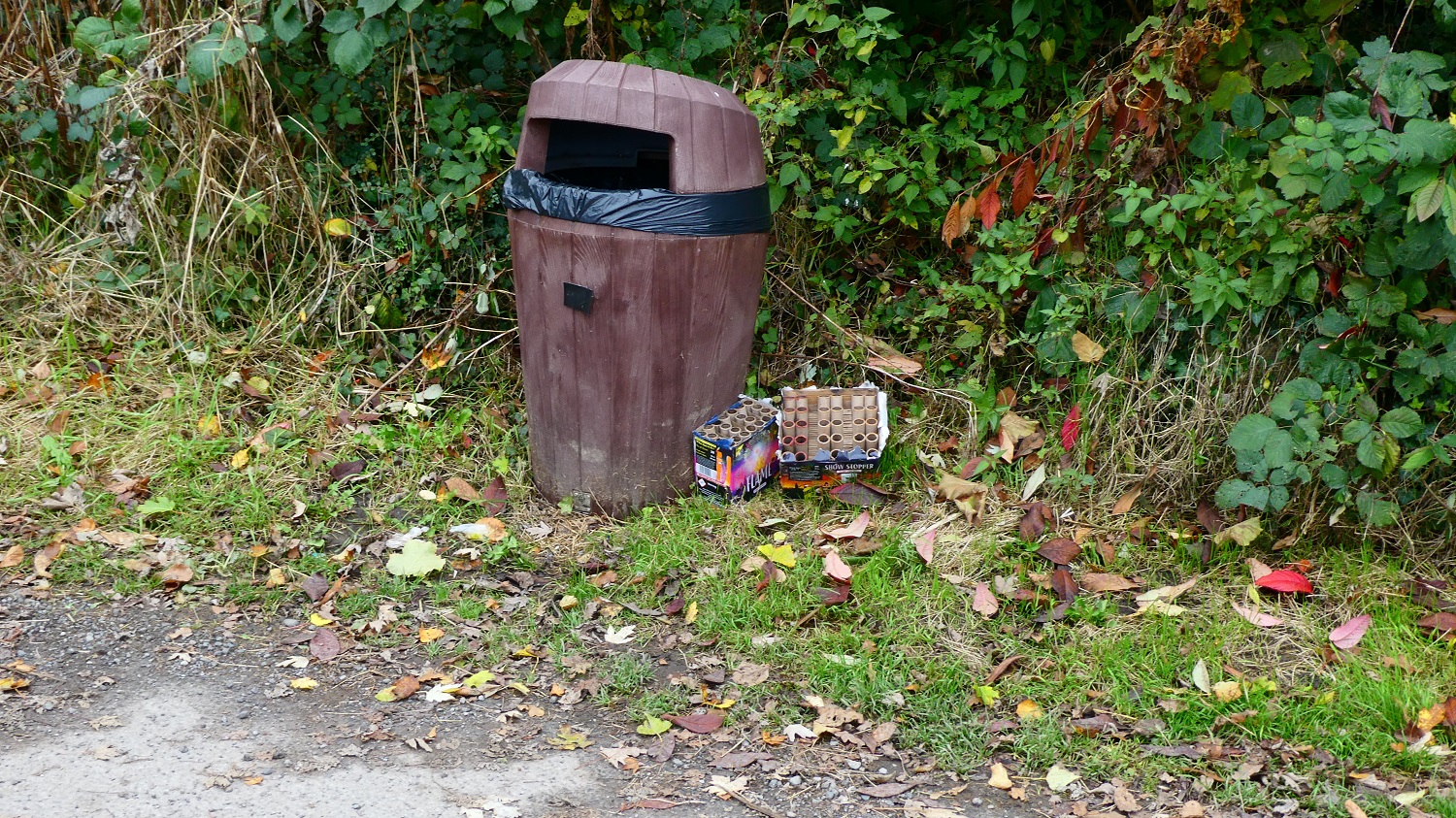 And somebody held a firework party. They left the packaging by the bins in the car park and we do appreciate the impulse not to leave litter in the park but we really don’t know what makes anybody think that a Local Nature Reserve is the right place for a firework party in the first place.