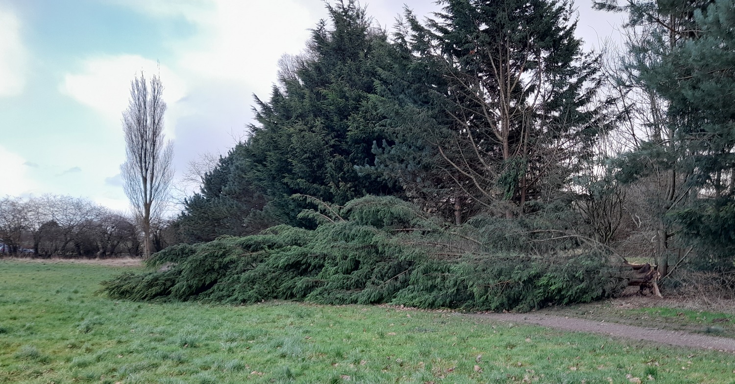 So far, we seem to have escaped with the loss of just a single tree from the boundary of Lambrok Meadow and a couple of branches elsewhere.
