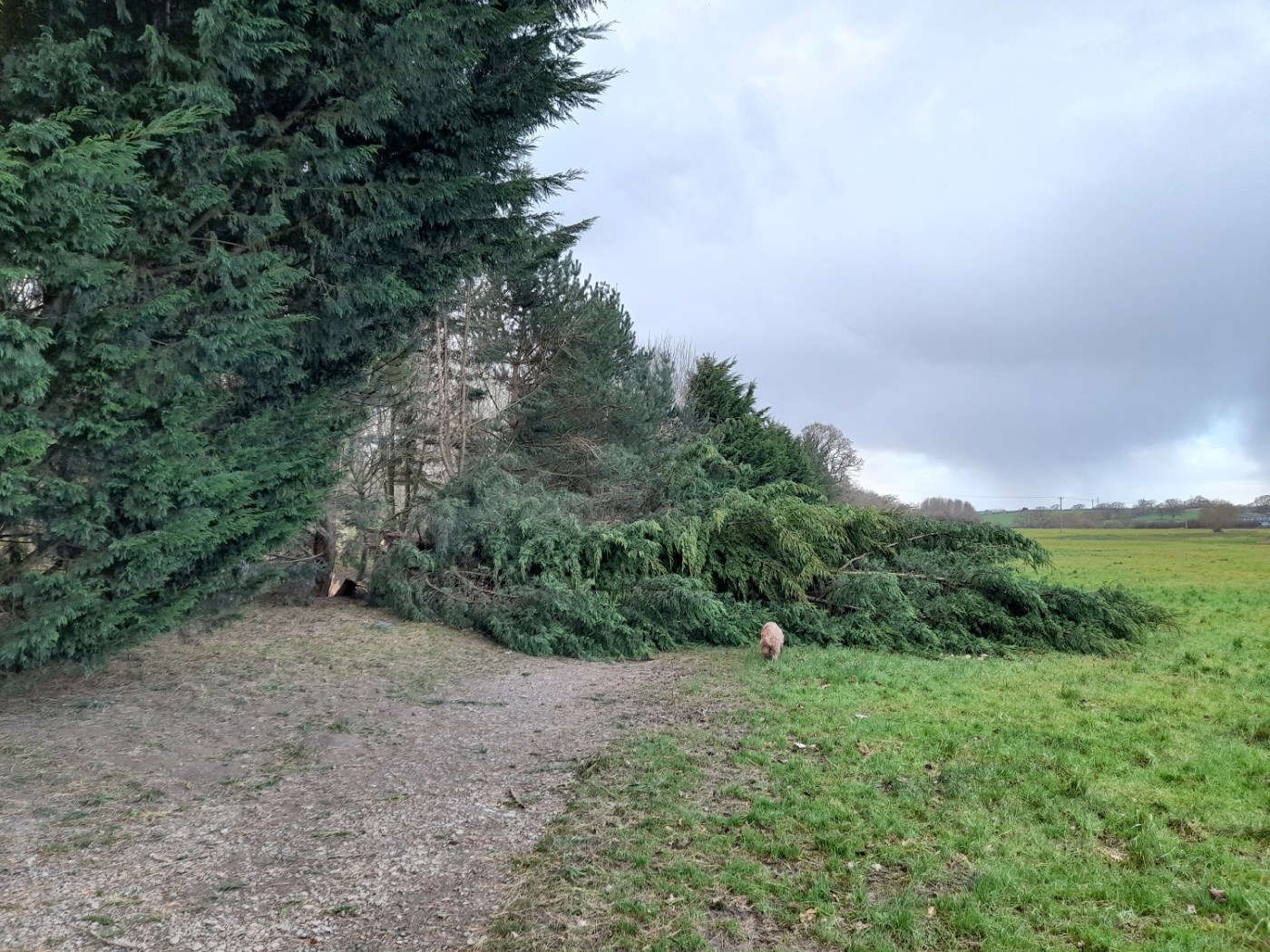 So far, we seem to have escaped with the loss of just a single tree from the boundary of Lambrok Meadow and a couple of branches elsewhere.