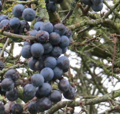The blue part of a sloe’s blue-black colour is a bloom of yeast; sloes will ferment on the tree and intoxicate the birds that eat them. While there is no proof, it is hard to believe that Neolithic people didn’t make sloe wine.