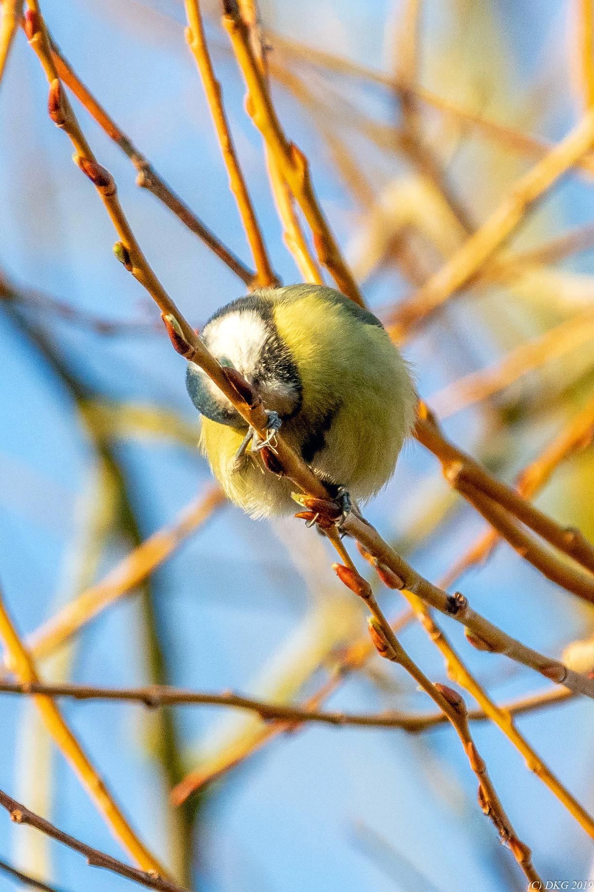 Small birds, like blue tits, do not store a lot of fat, perhaps only enough to get them through a single night. A long and cold winter’s night can be quite an ordeal and research has shown that blue tits are some 5% lighter at dawn than when they went to roost the previous night. A blue tit needs to eat, each day, the equivalent of approximately 300 small insects. It is not surprising that these little birds have to spend so much time foraging.