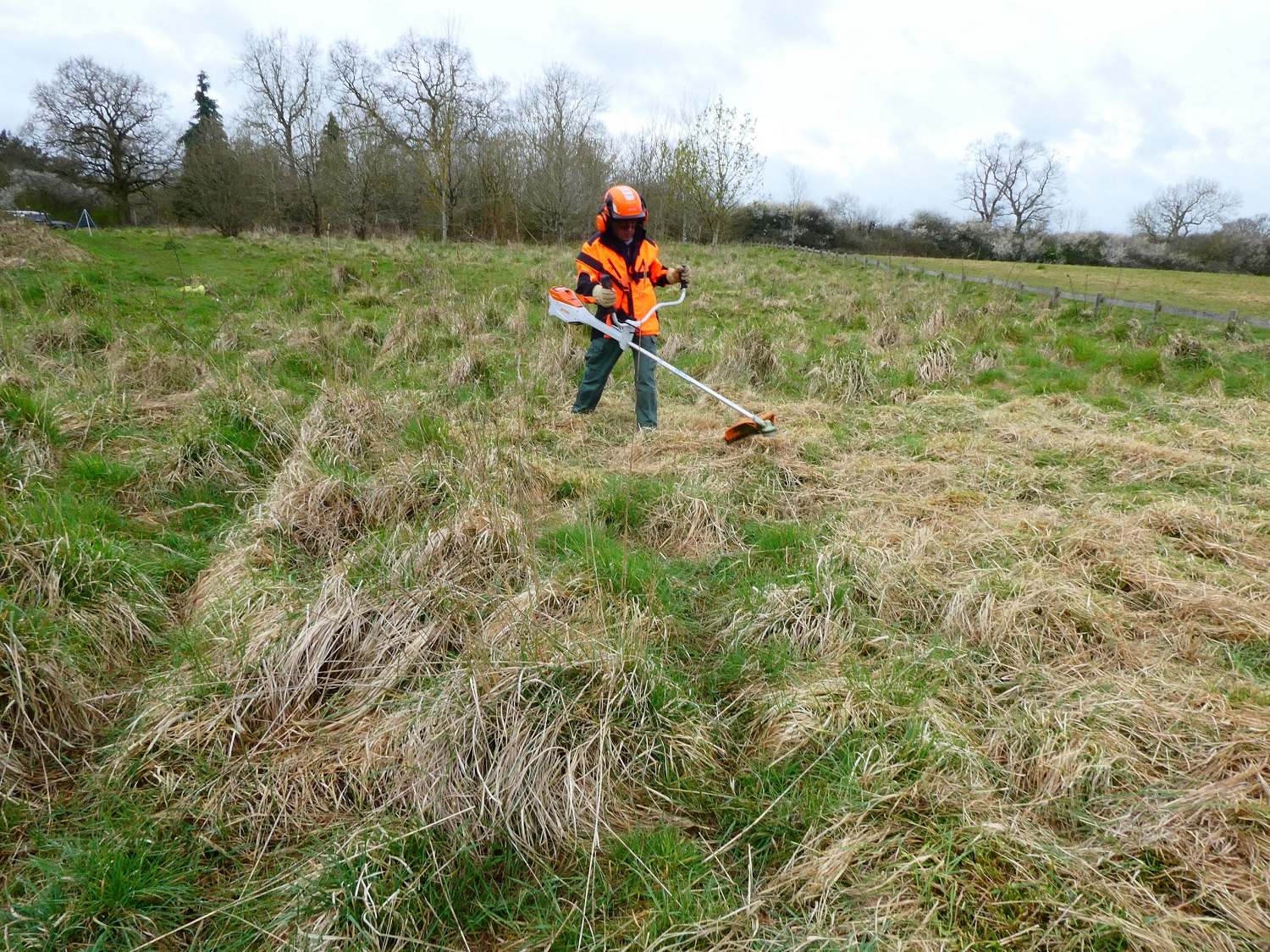 First, they walked over the grassed area marked for cutting to ensure that there were no slow worms or other creatures that might be hurt by the power tools, and spent some time to make sure there were no birds’ nests among the bramble designated for trimming. Satisfied that everything was clear they set to.