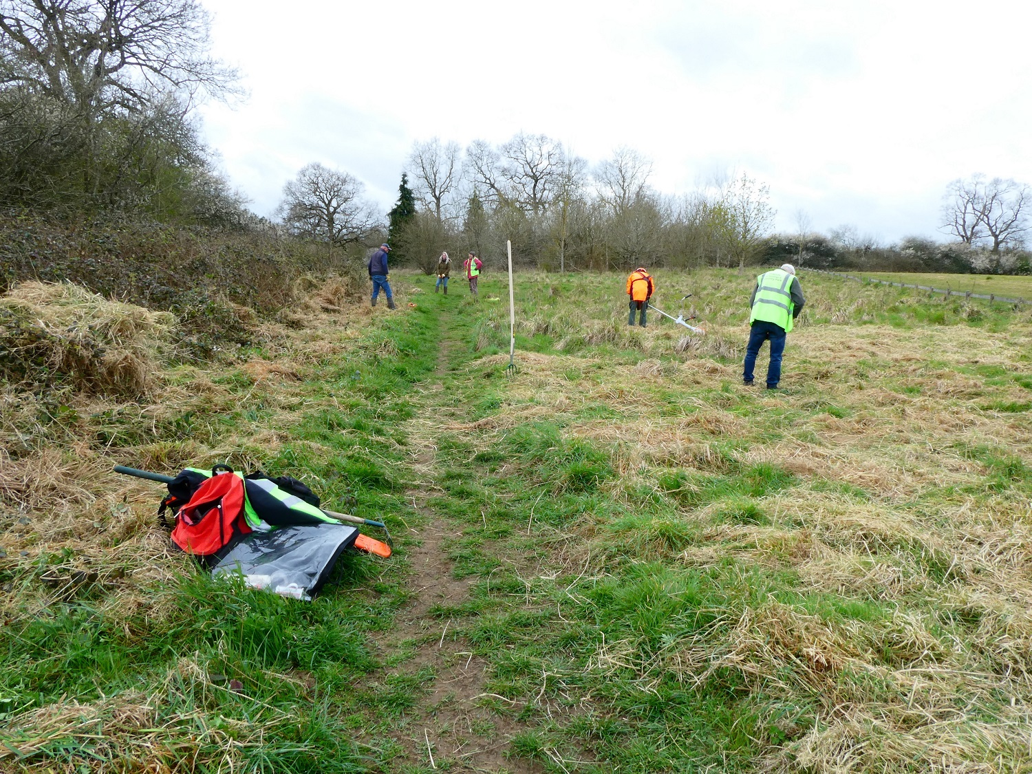 Wednesday’s work party task for the Friends was to cut back the tussocks in the set-aside at the top of Kestrel Field and to slow down the advance of the brambles from the hedge between the set-aside and The Arboretum.