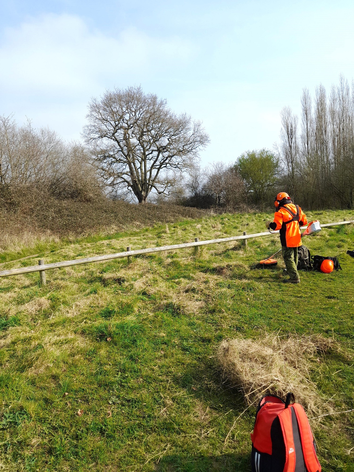 Rick and Katy Gunning, who run Wessex Rural Crafts, Ecology & Arboriculture, were carrying out some work for Wiltshire Council in the reserve when they heard that we volunteers lacked formal training in the use of power tools. Wiltshire Council cannot insure us to use power tools as we do not have the proper qualifications so we were not allowed to use our new tools in the park. Rick and Katy immediately proposed funding to train five of our volunteers, so that we can use the tools in the park and be properly covered by Wiltshire Council’s insurance.