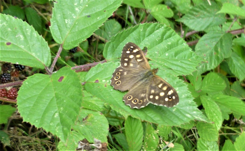 It is unusual to see a speckled wood feeding on nectar as this one seems to be. More usually, they feed in the treetops, on the honeydew excreted by aphids. They are rarely seen feeding on flowers, except early and late in the year when aphid activity is low.