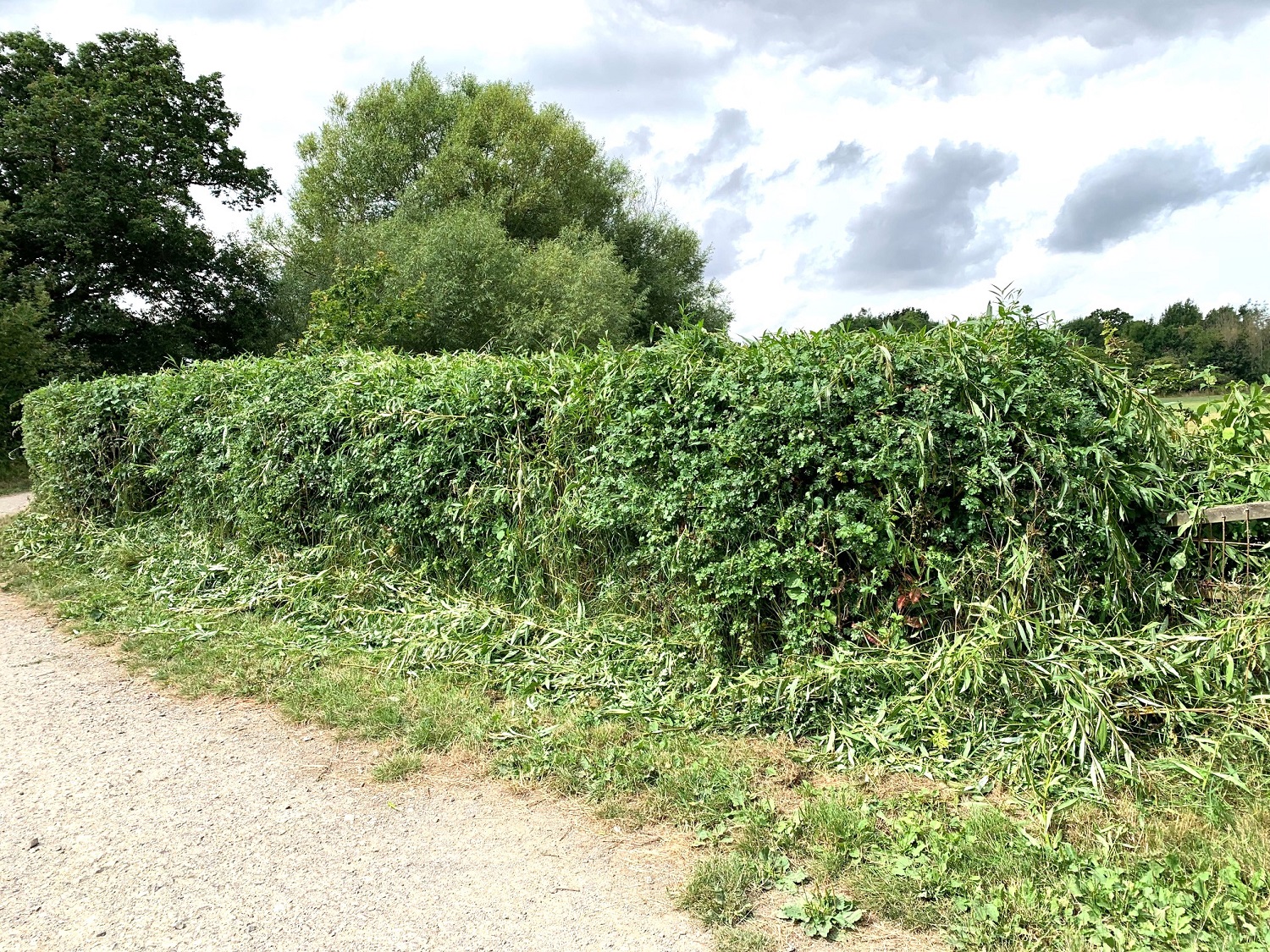 Team B also took advantage of the low water level to cut back the hedge on the pond side. Hedge trimming done, they moved on towards the decorated bridge, blocking the gaps that visiting dogs make. There are water voles, a protected species, living and breeding in that stretch of the stream, and we do as much as we can to minimise disturbance to their habitat.