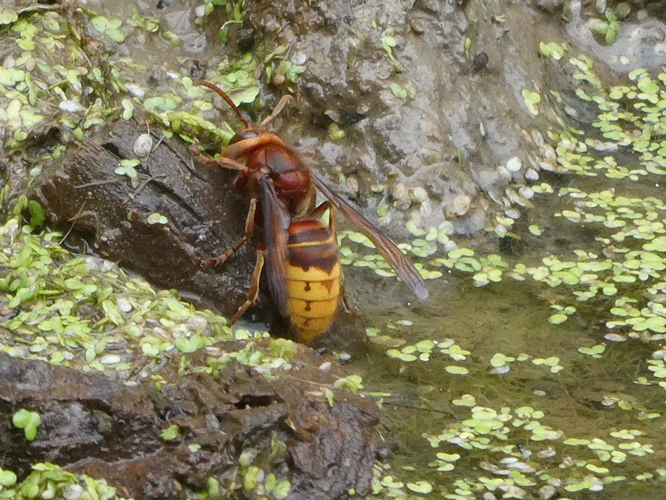 A hornet, drinking at the Iris Pond, photographed by Clive Knight. Ian Bushell, our entomologist, has identified it as a queen.